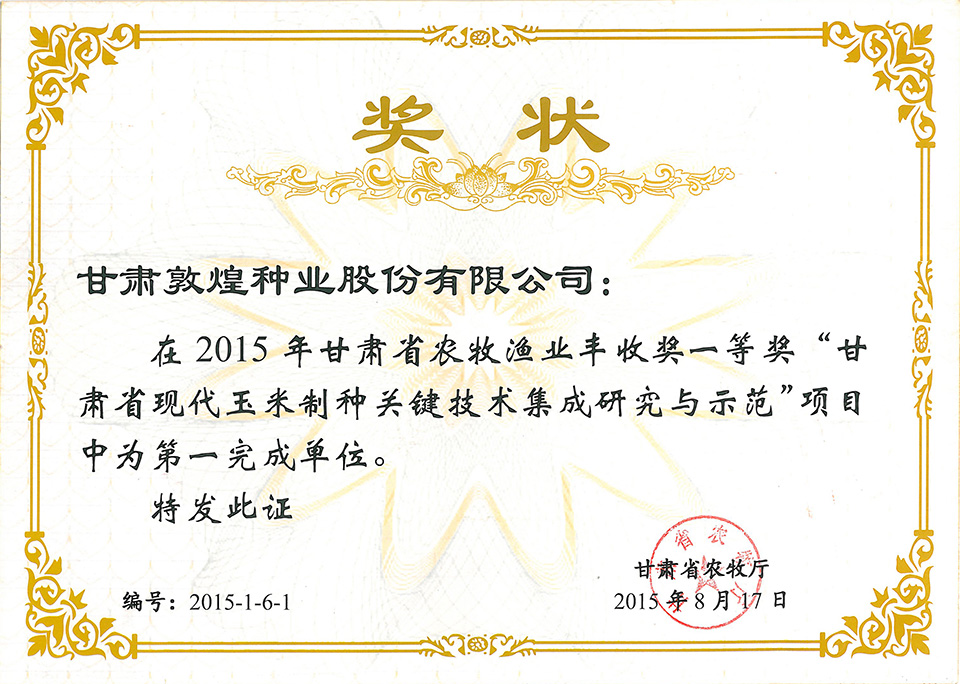 2015年甘肅省農(nóng)牧漁業(yè)豐收獎一等